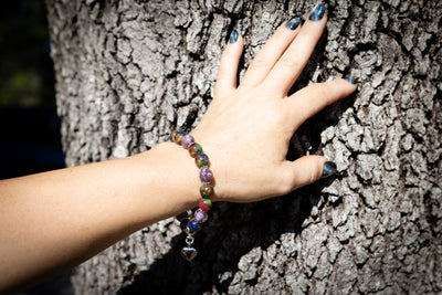 Rainbow Tiger Eye Bracelet with Braided Cremation Heart